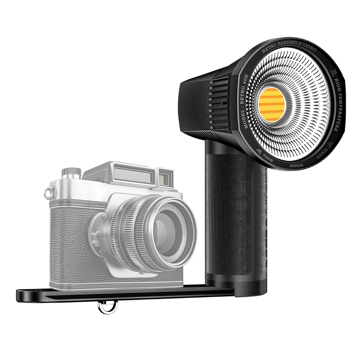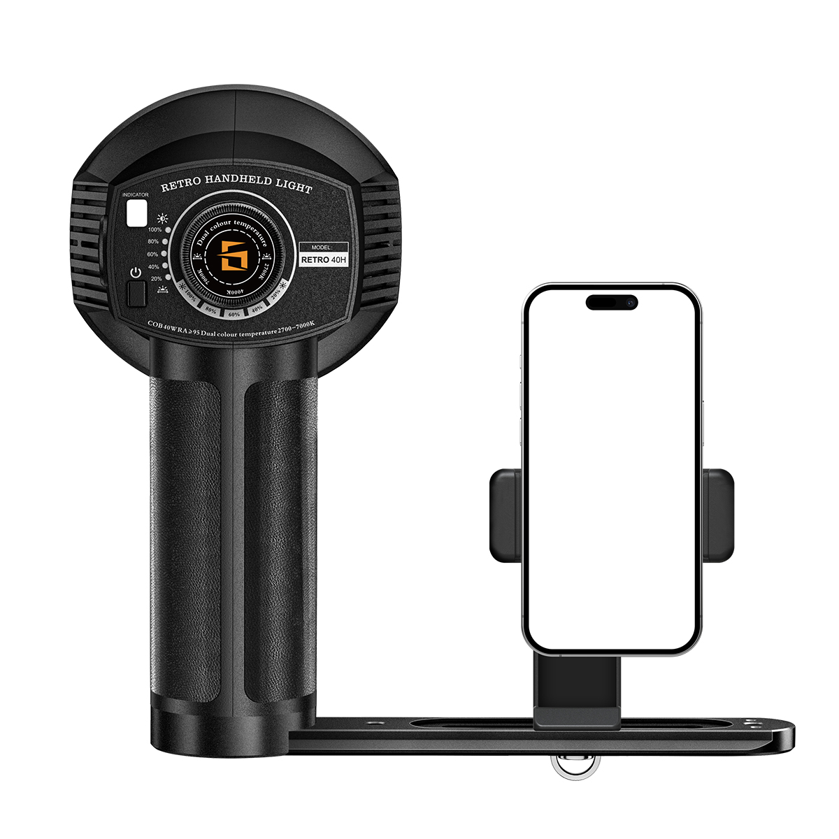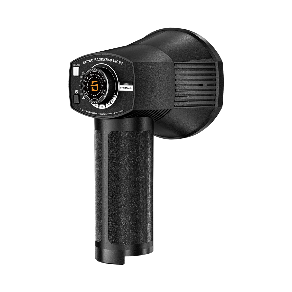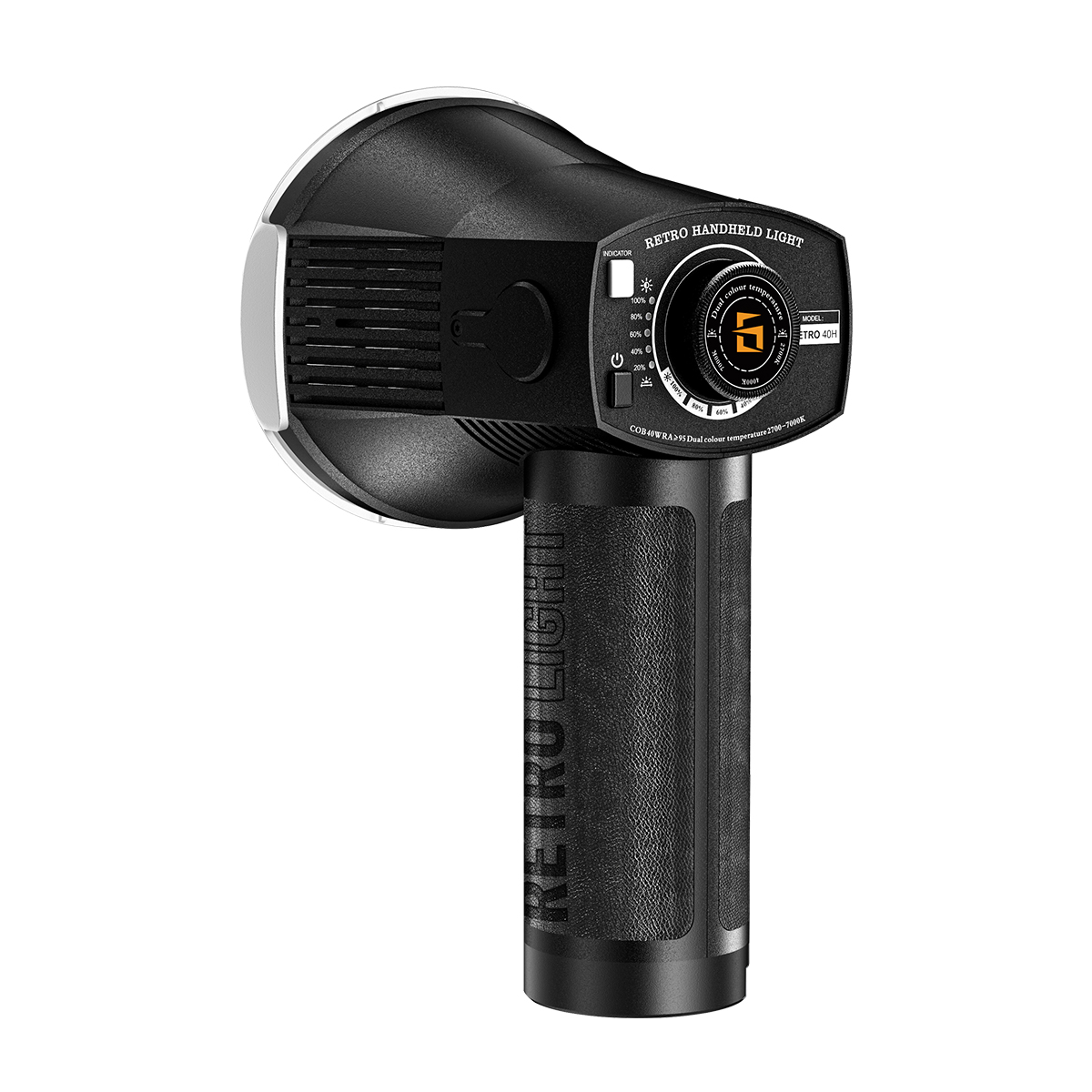 LENSGO 40W Handheld Retro Video Light 40H|Portable COB LED Fill Light|Stepless Dimming & 2700K–7000K|CRI 96+|Built-in Battery|Photography, Filming & Vlogging
