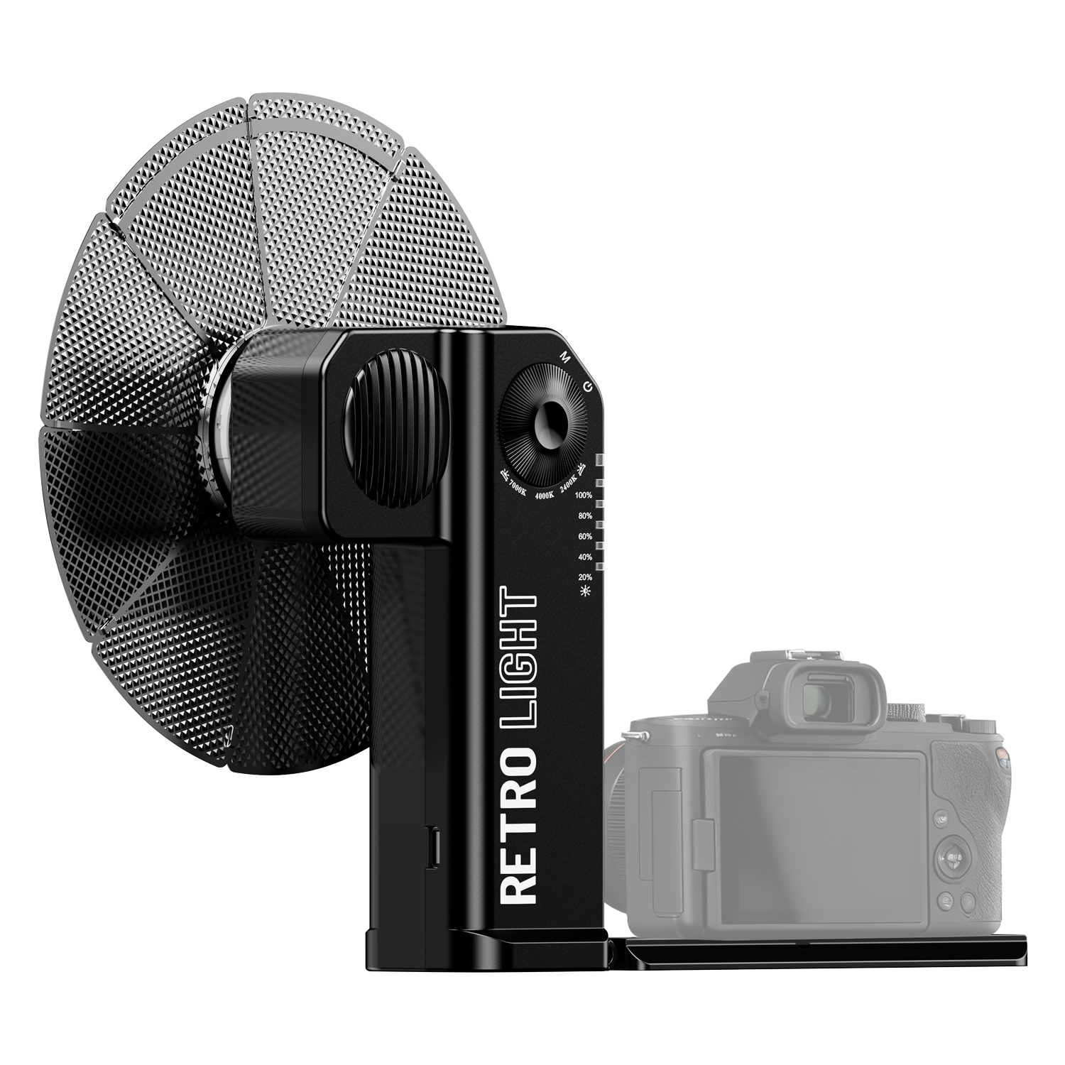 You will receive a complete ready-to-use kit: The Retro Light main body, Soft Light Diffuser, Phone Clip, Type-C Charging Cable, Cold Shoe Mount + Camera Bracket, and 2x Hand Screws.