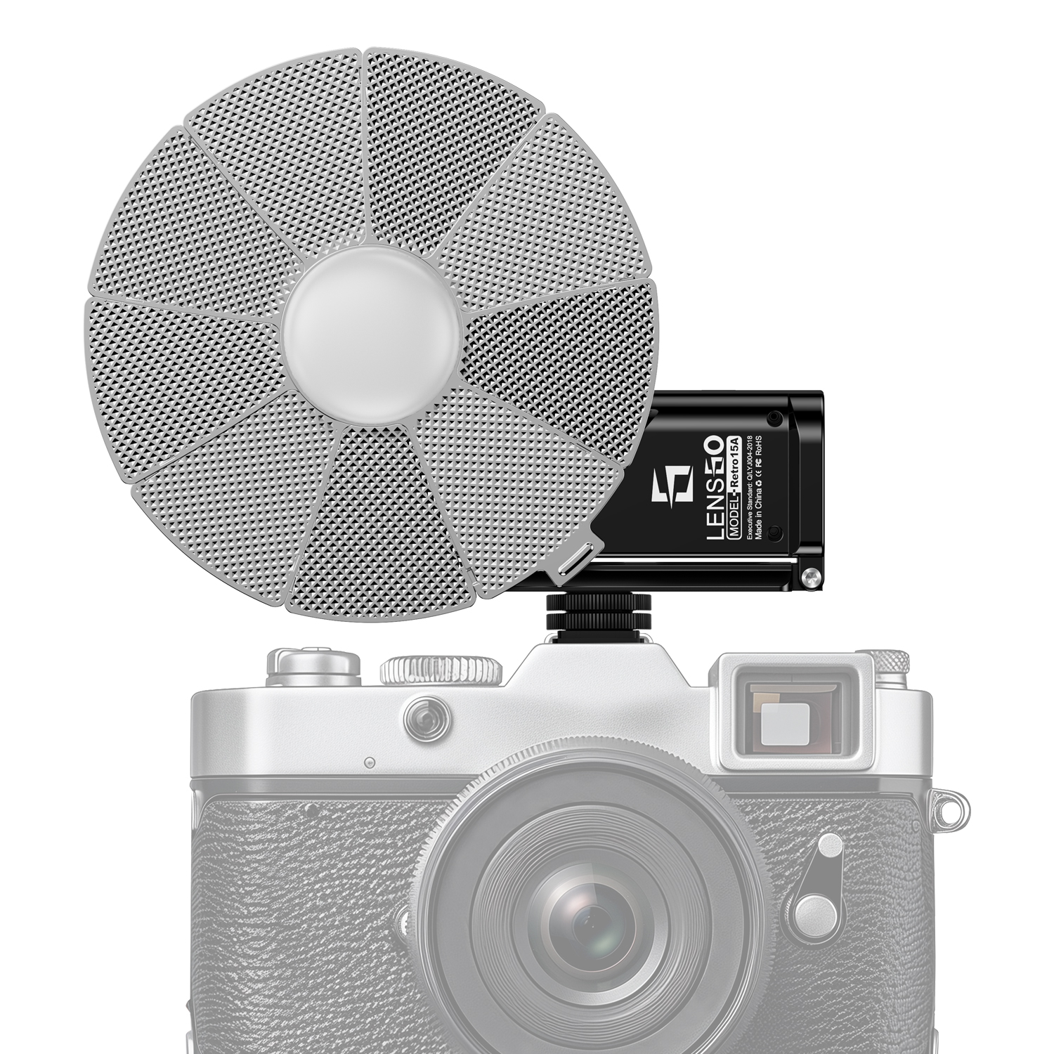 The light is equipped with a reflector and a soft light diffuser that creates uniform and soft lighting, effectively minimizing harsh shadows. This makes it ideal for portrait and product photography.